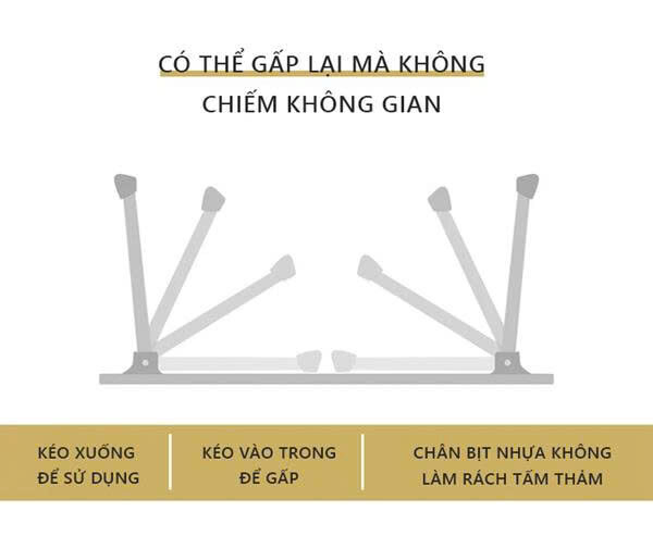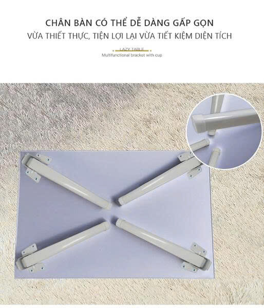 • Chân bàn nhựa có bọc cạnh chống trơn trượt. Ngoài ra có chức năng gấp gọn chân bàn để dễ đem cất không bị vướng víu khi không sử dụng