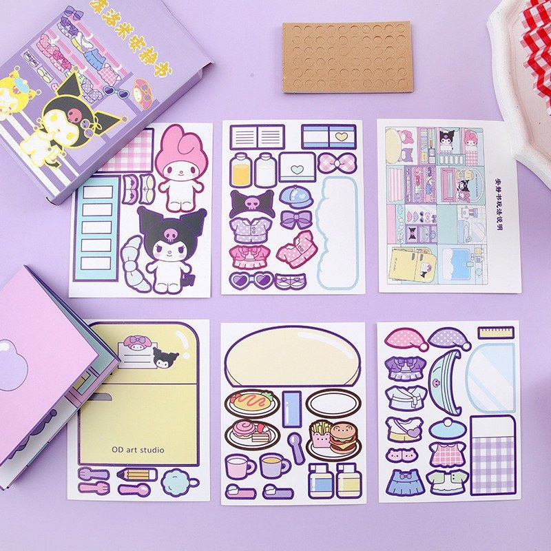 – Các trang đồ dùng, nhân vật đã cắt viền, chỉ lấy nhẹ là rời ra. Dùng băng keo 2 mặt đi kèm theo bộ sách để cố định chúng ở đúng vị trí