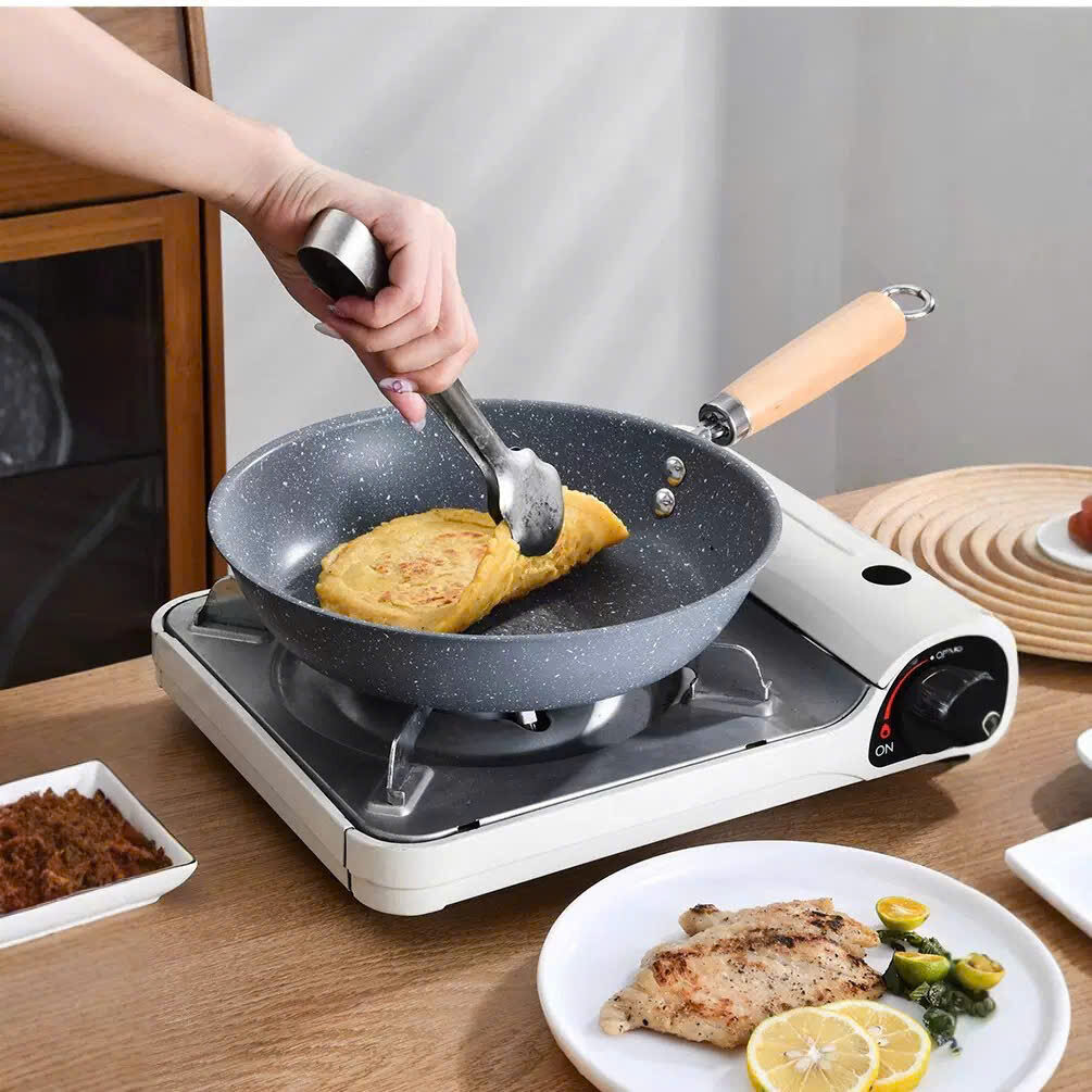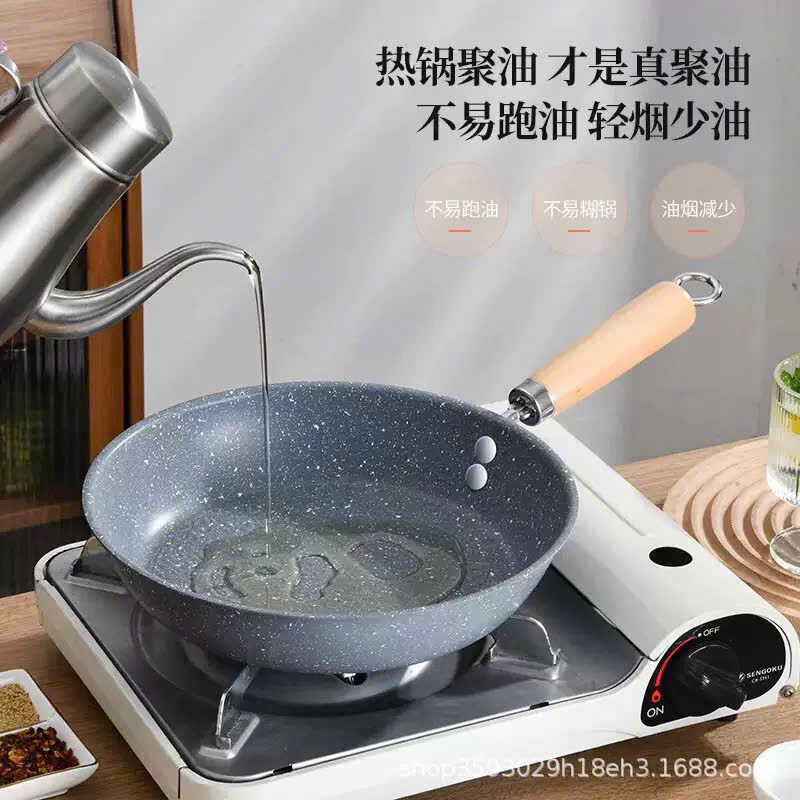CHẢO NHẬT VÂN ĐÁ LÒNG NÔNG SIZE 28CM CÁN GỖ