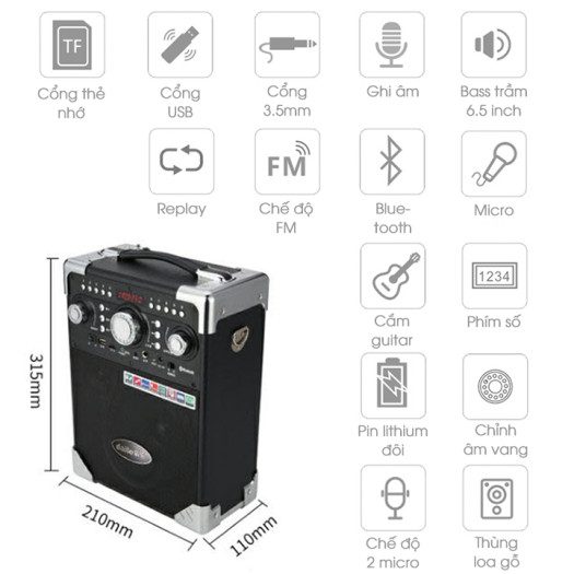 Tặng kèm Micro không dây chất lượng. Hát karaoke nghe nhạc fm ghi âm đọc thẻ nhớ v…v.