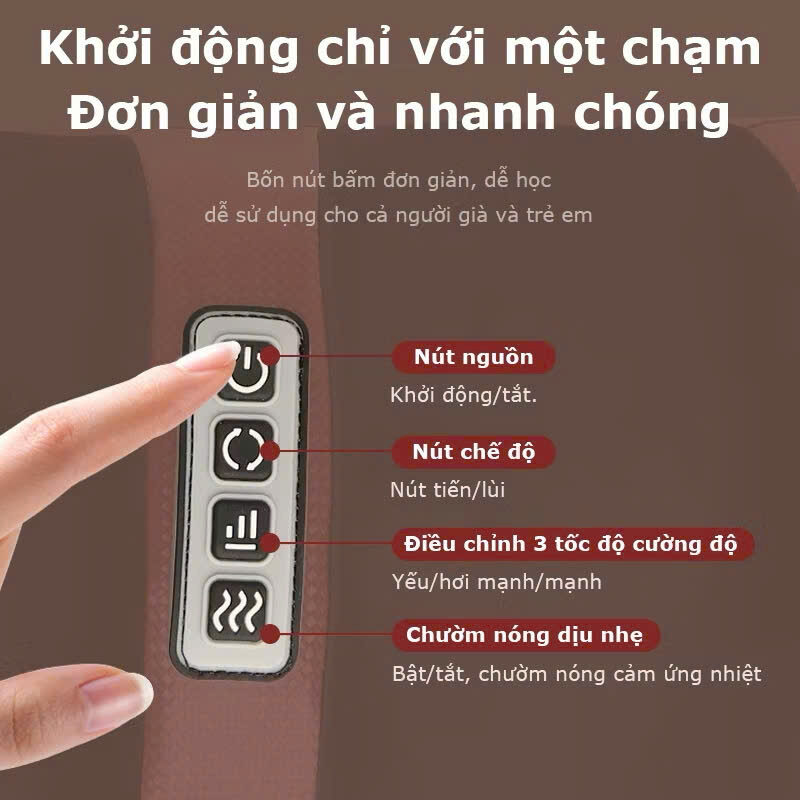 - Chế độ massage: 4 chế độ + con lăn +túi khí nén