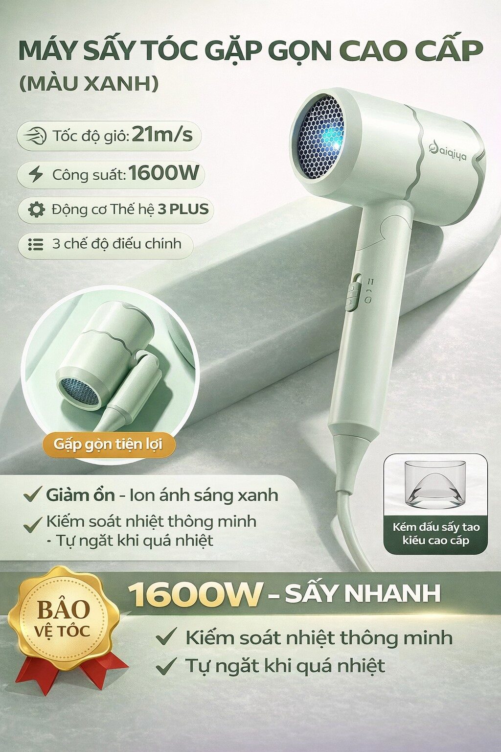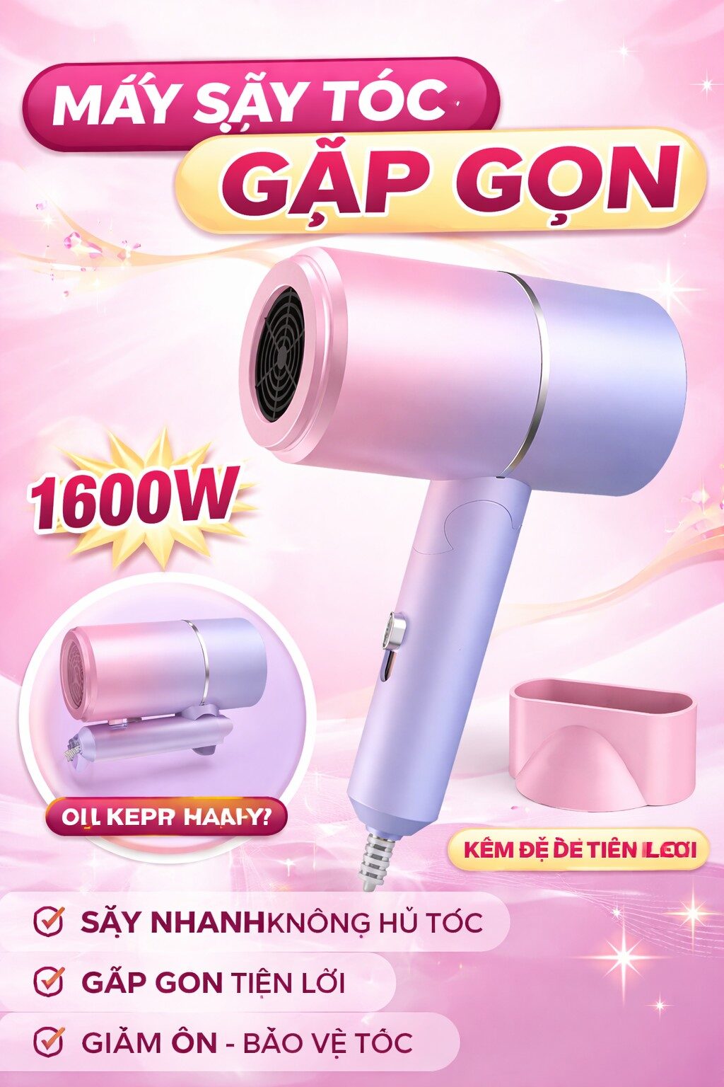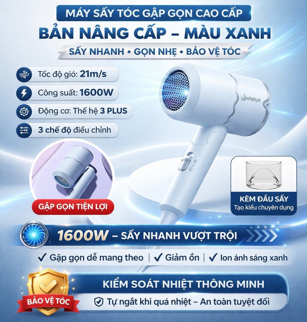 💨 MÁY SẤY TÓC GẬP GỌN – NHỎ GỌN NHƯNG CỰC MẠNH