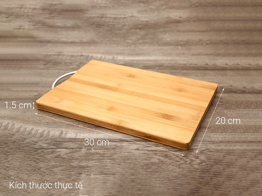 Thớt tre chữ nhật 20 x 30 cm có quai treo, dễ dàng treo móc