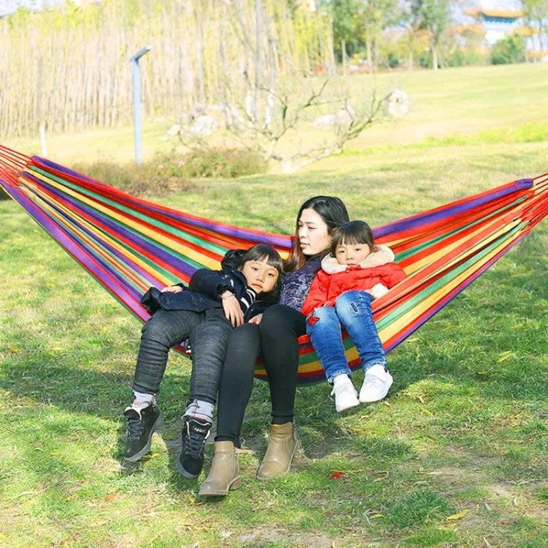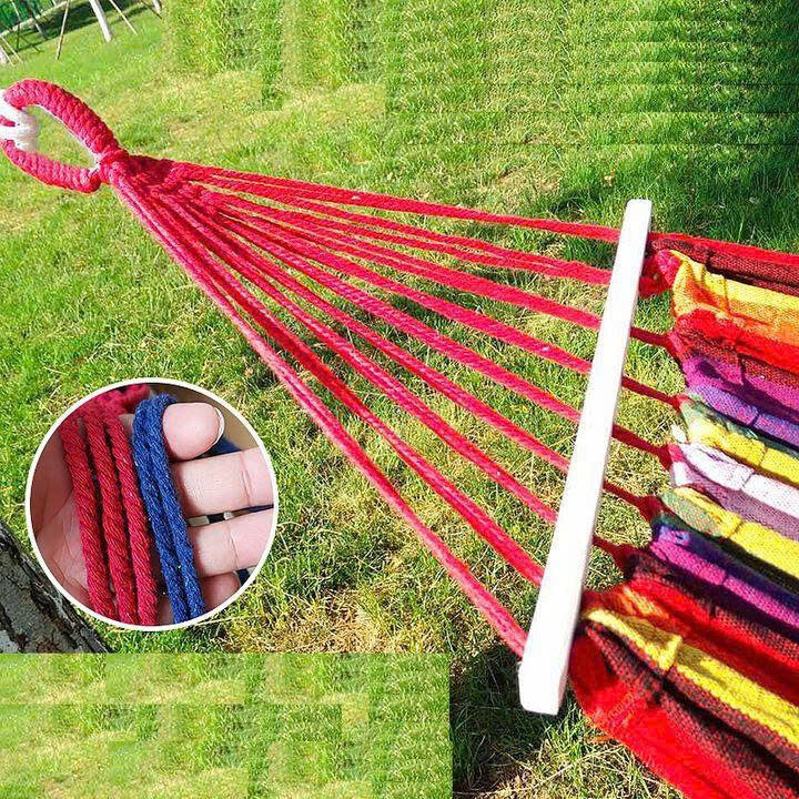 – Võng du lịch được thiết kế dáng cầu vồng, 2 đầu dây chắc chắn cùng dây dù đi kèm. Có thể buộc ở bất cứ đâu có cây, cọc…